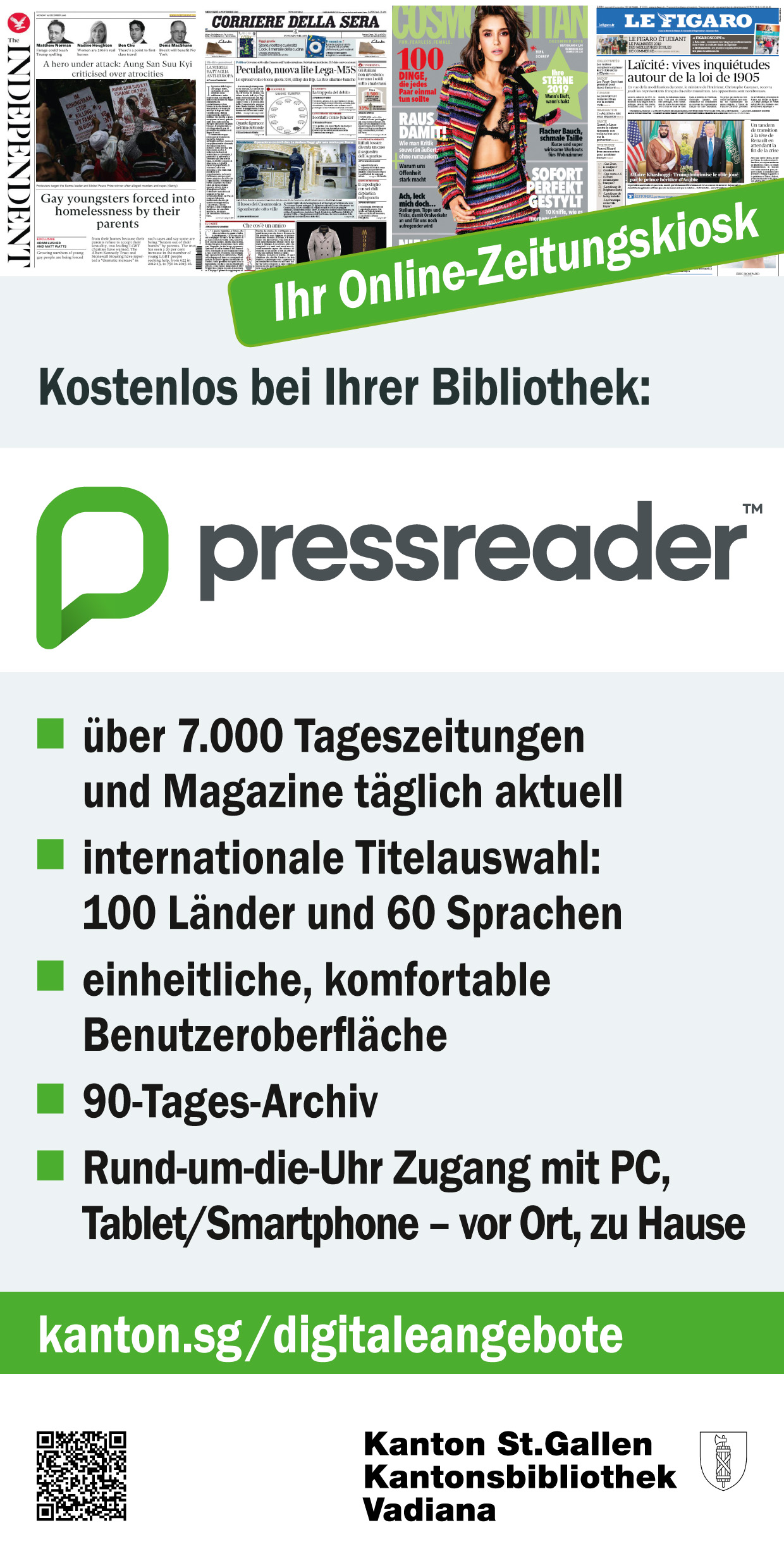 Im Rahmen der Bibliotheksmitgliedschaft können Sie PressReader ohne weitere Gebühren nutzen. Nach der Anmeldung mit Ihrer Benutzernummer und Ihrem Kennwort können Sie Zeitungen und Zeitschriften aus der ganzen Welt lesen. PressReader bietet eine internationale Titelauswahl von A wie Albanisch bis Z wie Zulu ideal geeignet für unterschiedliche Nutzergruppen, z.B.: