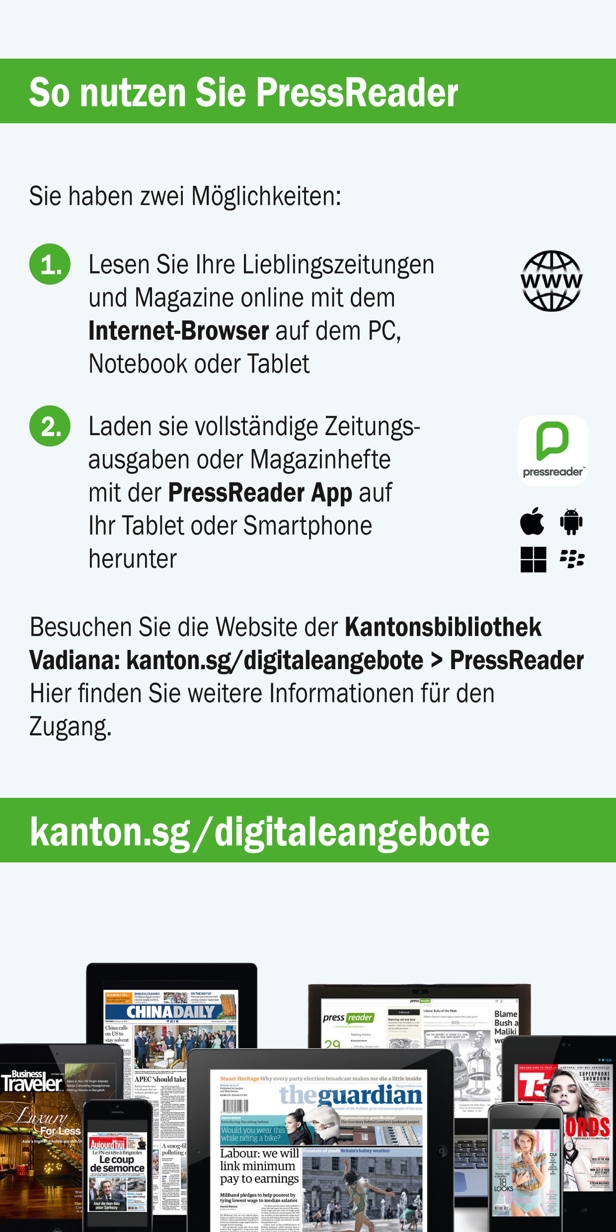 - Download von Zeitungen und Offline-Lesen über die PressReader-App