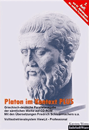 Verlagsinformation :: Publisher's information "Platon im Kontext PLUS" enthält mit dem kompletten Textbestand der von Friedrich Schleiermacher übersetzten Dialoge (ergänzt um die Übersetzungen von Franz Susemihl und Hieronymus Müller) auch den griechischen Originaltext nach der als klassisch geltenden Ausgabe von John Burnet, Oxford 1901ff. Der neu digitalisierte griechische Text wird mit allen Diakritika wiedergegeben und in einem auf Bildschirmlesbarkeit hin optimierten Schriftfont dargestellt. Original und Übersetzung lassen sich durch wechselseitig zugeordnete Links -durch einfachen Mausklick auf die jeweiligen linksbündig geführten Stephanuszahlen- parallel am Bildschirm anzeigen. Titelübersicht In der Übersetzung und mit den Einleitungen Friedrich Schleiermachers: Phaidros - Lysis - Protagoras - Laches - Charmides - Euthyphron - Parmenides - Des Sokrates Verteidigung (Apologia Sokratous) - Kriton - Ion - Hippias, das kleinere Gespräch dieses Namens - Hipparchos - Minos - Alkibiades der sogenannte Zweite - Gorgias - Theaitetos - Menon - Euthydemos - Kratylos - Der Sophist - Der Staatsmann (Politikos) - Das Gastmahl (Symposion) - Phaidon - Philebos - Theages - Die Nebenbuhler (Erastai) - Alkibiades der sogenannte Erste - Menexenos - Hippias, das größere Gespräch dieses Namens - Kleitophon - Der Staat (Politeia) - (In der Übersetzung von Franz Susemihl:) Timaios - Kritias - Gesetze (Nomoi) In der Übersetzung von Hieronymus Müller u.a.: Briefe. Softwarefeatures Das Programm, das in einer überarbeiteten, erweiterten Version vorliegt, ermöglicht eine schnelle Volltextsuche sowohl über den deutschen als auch über den griechischen Text, und bietet neben neuen Funktionen wie Textverarbeitung und Komplettwortlisten, die das Griechische in Transskriptionsschreibweise erfassen, auch die Möglichkeit einer automatisierten Seitenauswertung von Suchergebnissen (inkl. der zu Zitationszwecken üblichen Stephanusnumerierung) zur Erstellung eigener Schlagwortregister, die auch für die Indizierung entsprechender Buchausgaben genutzt werden können. Neben der recherchierbaren originalen-Stephanus-Seitenzählung im Fließtext, einer Bibliographie, und einer Zeittafel sind alle bei Platon erwähnten Eigennamen in einem mit der Volltextsuche verknüpften, erläuternden Glossar zusammengefasst. Das Programm ermöglicht an weiteren Features: formatierungsgetreuen Ausdruck (kursiv, gesperrt, fett etc.) das Kopieren auch des griechischen Textes in die Viewlit eigene Textverarbeitung oder in ein anderes Textverarbeitungsprogramm; Anmerkungen und Lesezeichen einfügen; variable Textgrößeneinstellung; Parallelfensterausgabe zum direkten Textvergleich über die als Seitenlinks umgesetzten Stephanusnumerierungen; Hypertext- u. History-Funktionen; Index u.a.m. Neu entwickelt ist die Retrievallösung für die griechischen Textteile, die im übrigen mit allen Akzenten, Spiritus, Sonderzeichen etc. (im Sonderfenster auch zeilengenau) angezeigt, kopiert und ausgedruckt werden können. Die Sucheingabe erfolgt dabei intern über die klassische Transkription also mittels lateinischer Tastatureingaben bzw. Komplettwortlisten - mit Berücksichtigung der Ligaturumsetzung, wie u.a. t(heta) zu th, c(hi) zu ch und Sonderfällen des doppelten Gamma zu ng, des spiritus asper etc., und erlaubt so auch für den philologisch weniger versierten Anwender komfortable Recherchen in griechischen Texten ohne zusätzlichen Lernaufwand bei Sonderzeichen. Integriert sind Wörterlisten (mit Trefferhäufigkeitsanzeige), die den kompletten griechischen und deutschen Wortbestand der auf CD-ROM enthaltenen Texte umfassen und in Verbindung mit der Suchbegriffeingabe eine blitzschnelle Vorauswahl - unter Vermeidung ggf. unnötiger Suchanfragen - ermöglichen. Die sortierbare Suchausgabe erfolgt dabei differenziert sowohl nach Kapitel- als auch nach Werkeintrag und Suchtrefferhäufigkeit, wobei sich zusätzlich - und auf Knopfdruck - die Fundstellen auch nach den entsprechenden Buchseitenvorkommnissen auswerten lassen. Neu: In der 2. Auflage mit 92 faszinierenden, perspektivischen Abbildungen von 16 römisch-späthellenistischen Repliken einer vermutlich auf das verschollene Original des Silanion zurückgehenden Portraitbüste Platons (aus den Sammlungen: Berlin (2), Vatikan (3) bzw. Rom (3), Paris, Aix-en-Provence, Cambridge, Holkam Hall (Norfolk), Syrakus, Kopenhagen, Athen und München). |