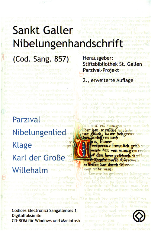 Inhalt :: Content Die CD-ROM-Edition enthält farbige Abbildungen in drei verschiedenen Auflösungsstufen des um 1260 entstandenen Codex 857 der Stiftsbibliothek St. Gallen, der ältesten Sammelhandschrift mittelhochdeutscher höfischer Epik, die so bedeutende Texte wie Wolframs "Parzival", das "Nibelungenlied" und die "Klage", Strickers "Karl" und Wolframs "Willehalm" umfasst. Für das "Nibelungenlied", die "Klage" und Abschnitte aus "Parzival" wurden Transkriptionen erstellt, die mit den Farbabbildungen verlinkt sind; die Texte der Fragmente zu "Parzival" und "Nibelungenlied" werden in synoptischer Darstellung mit den entsprechenden Abschnitten des Codex präsentiert. Neu gegenüber Version 1 sind Erweiterungen der Transkriptionen auf Abschnitte aus Wolframs "Parzival", eine Aktualisierung der Begleittexte gemäß dem Forschungsstand von 2005 sowie Verbesserungen in der Bedienung. |